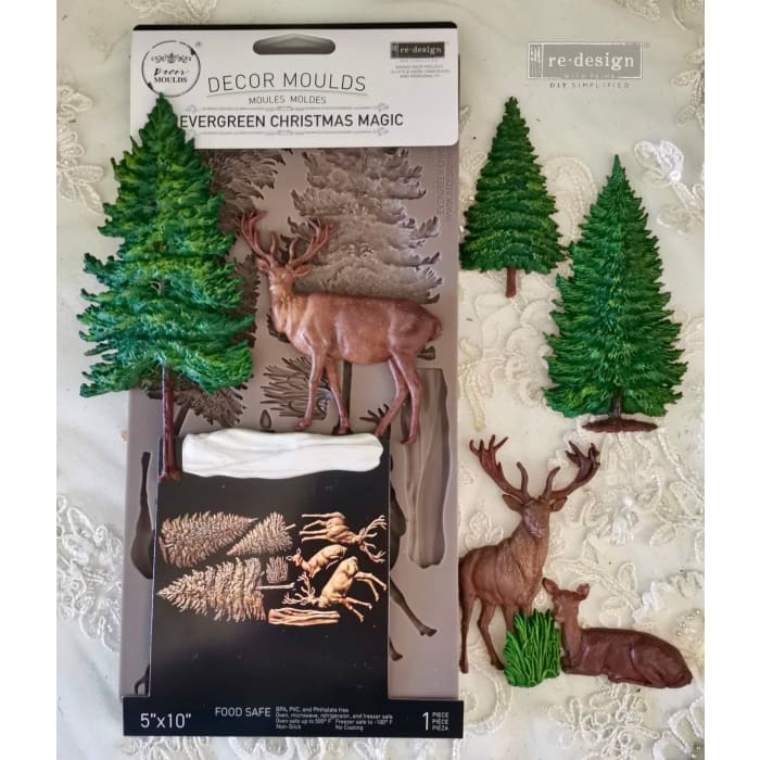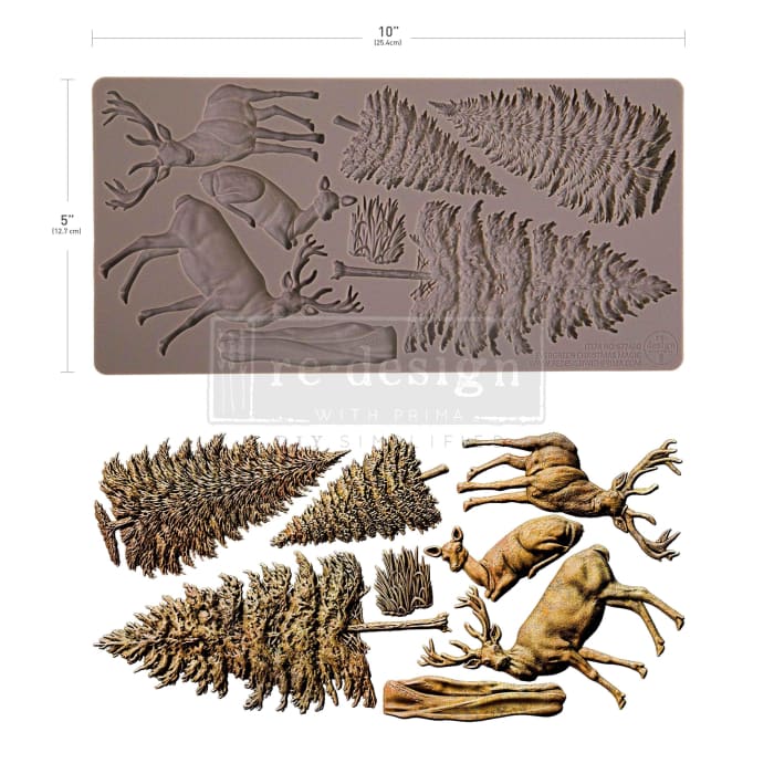 From tall pine trees to graceful deer, the Redesign With Prima Evergreen Christmas Magic Décor Mould® is filled with winter forest charm. Use these classic holiday elements to build woodland scenes, embellish frames and trays, or add natural elegance to your Christmas crafts. The textures and shapes make this mould a go-to for rustic, traditional, and enchanted winter projects alike.