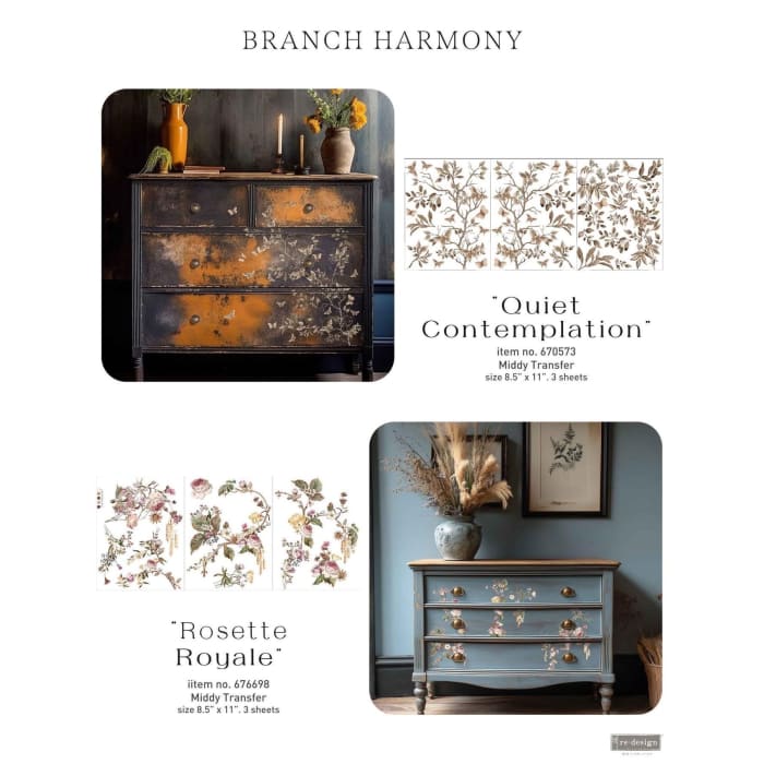 Softly falling leaves, bare branches, and gentle butterflies create the perfect autumn moment in the Quiet Contemplation Middy Transfer by Redesign With Prima®. With warm sepia tones and delicate detailing, this design feels like a quiet walk through a beautiful garden. Ideal for cozy autumn DIYs, seasonal furniture makeovers, or layered mixed media pieces.