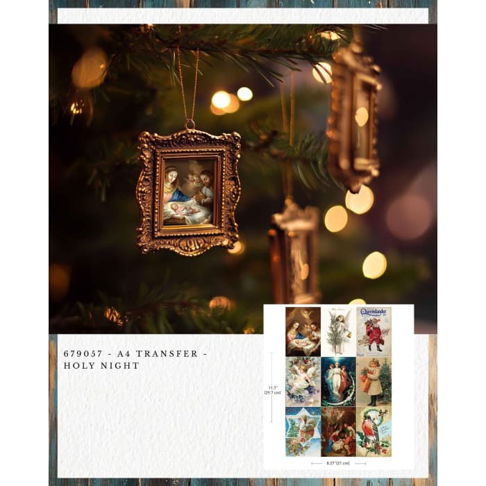 Celebrate the spirit of Christmas with the Redesign With Prima Holy Night Décor Transfer. This A4 (8.3" × 11.7") sheet features classic Nativity imagery, graceful angels, and vintage holiday motifs that bring faith, warmth, and tradition to your festive creations.