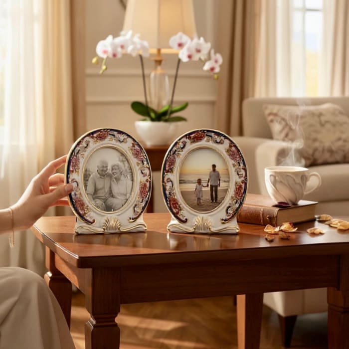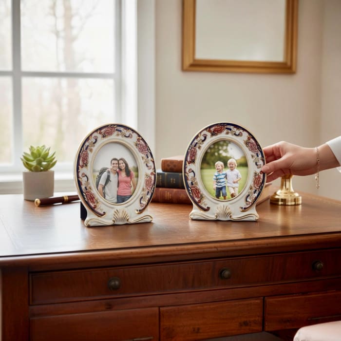 Every frame demonstrates thoughtful craftsmanship — smooth porcelain, bright gilding, and a classic oval shape that enhances photographs beautifully. Ideal for mantelpieces, desks, or sideboards, they bring sophistication and history into modern homes.