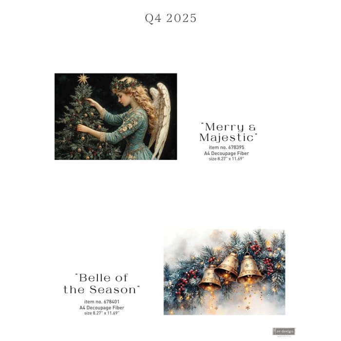 Add festive elegance to your Christmas crafts with Redesign with Prima Belle of the Season A4 Decoupage Fibre Paper. Featuring shimmering gold bells surrounded by frosted boughs, berries, and soft winter florals, this charming design captures the warmth and romance of the season. Perfect for adding a touch of vintage beauty to your Christmas cards, ornaments, boxes, small decor pieces, and mixed-media projects.
