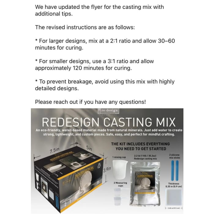 • Kit Includes: 1 bag of Casting Mix (2.2 lbs), 1 silicone mixing cup, 2 plastic measuring cups, 1 silicone square coaster mould, 2 silicone mixing sticks