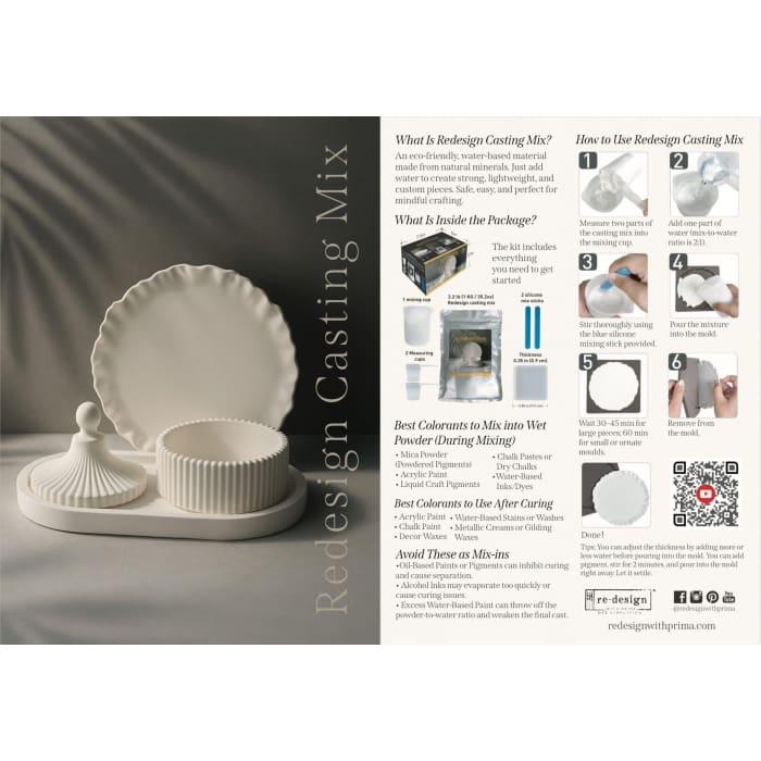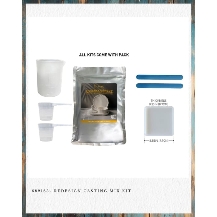 Unlock endless DIY possibilities with the Redesign Casting Mix Kit. This all-in-one set includes 2.2 lbs of Casting Mix, silicone mixing cup, plastic measuring cups, silicone coaster mould, and mixing sticks – everything you need to create coasters, ornaments, custom décor, and personalised gifts.