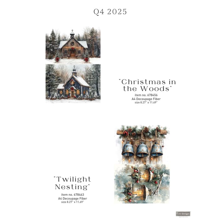 Bring rustic charm to your Christmas crafts with Redesign with Prima Christmas In The Woods A4 Decoupage Fibre Paper. Featuring cozy cabins, snowy forests, and woodland animals, this enchanting design captures the warmth and beauty of a winter wonderland. Perfect for adding a nature-inspired touch to wall art, festive signs, rustic boxes, ornaments, and small craft projects.