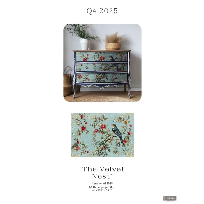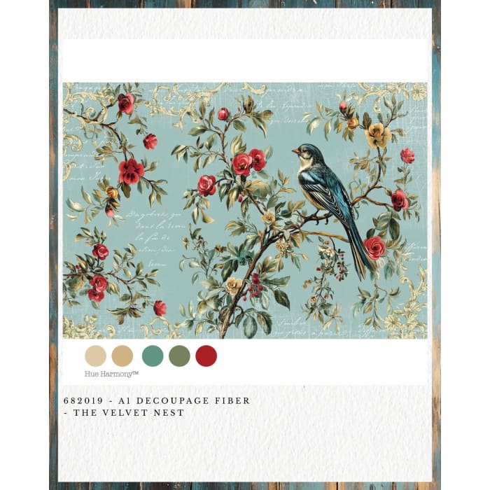 Bring festive artistry to your home with Redesign With Prima The Velvet Nest A1 Decoupage Fibre Paper. Featuring graceful birds among berries and branches, this large 23.4” × 33.1” sheet offers soft painterly detail and rich holiday tones. Perfect for statement furniture panels, canvas art, or wall décor, it transforms any surface into a stunning seasonal showpiece.